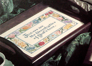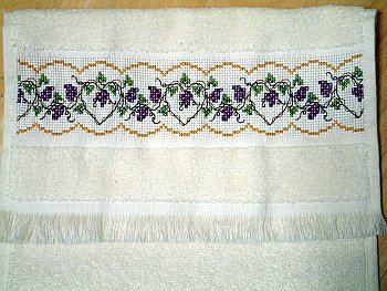 The fruits of the Spirit This is a stitched towel I just finished for my niece, Grace. It compliments the decor in her bathroom that was hand painted by her mother, Leah with vines, grapes and subtly woven in Bible verses that describe the traits of someone led by God's Spirit.